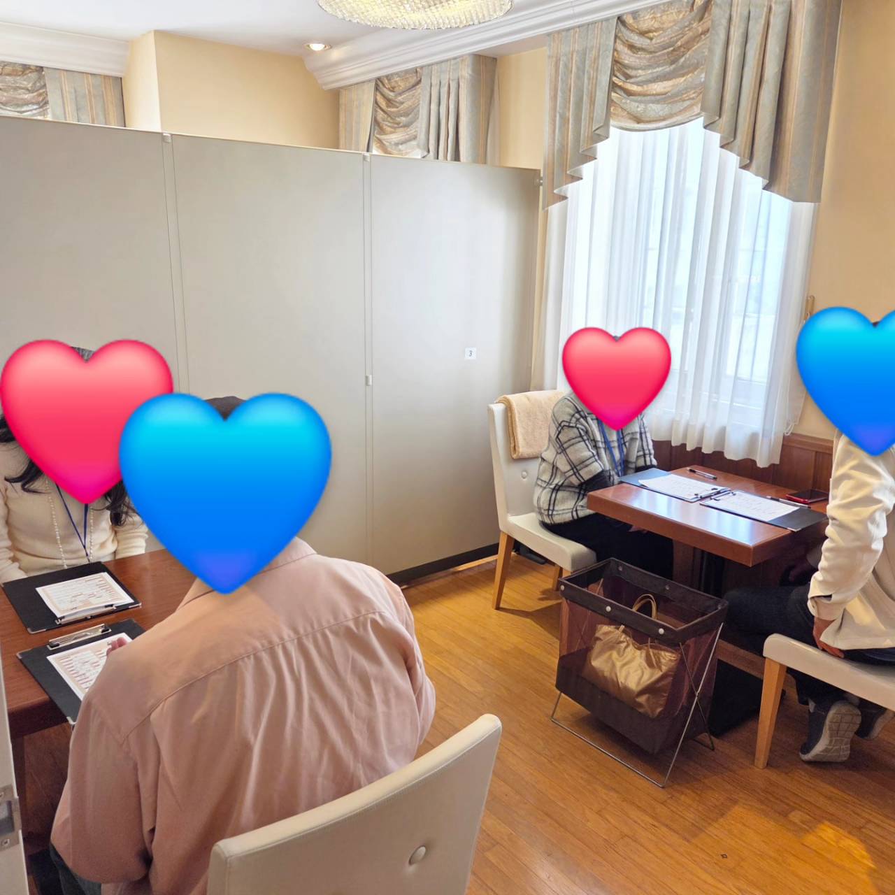 マッチングはなく、気になるお相手に「まずはお友達から」と連絡先カードをお渡ししていただく会でした。