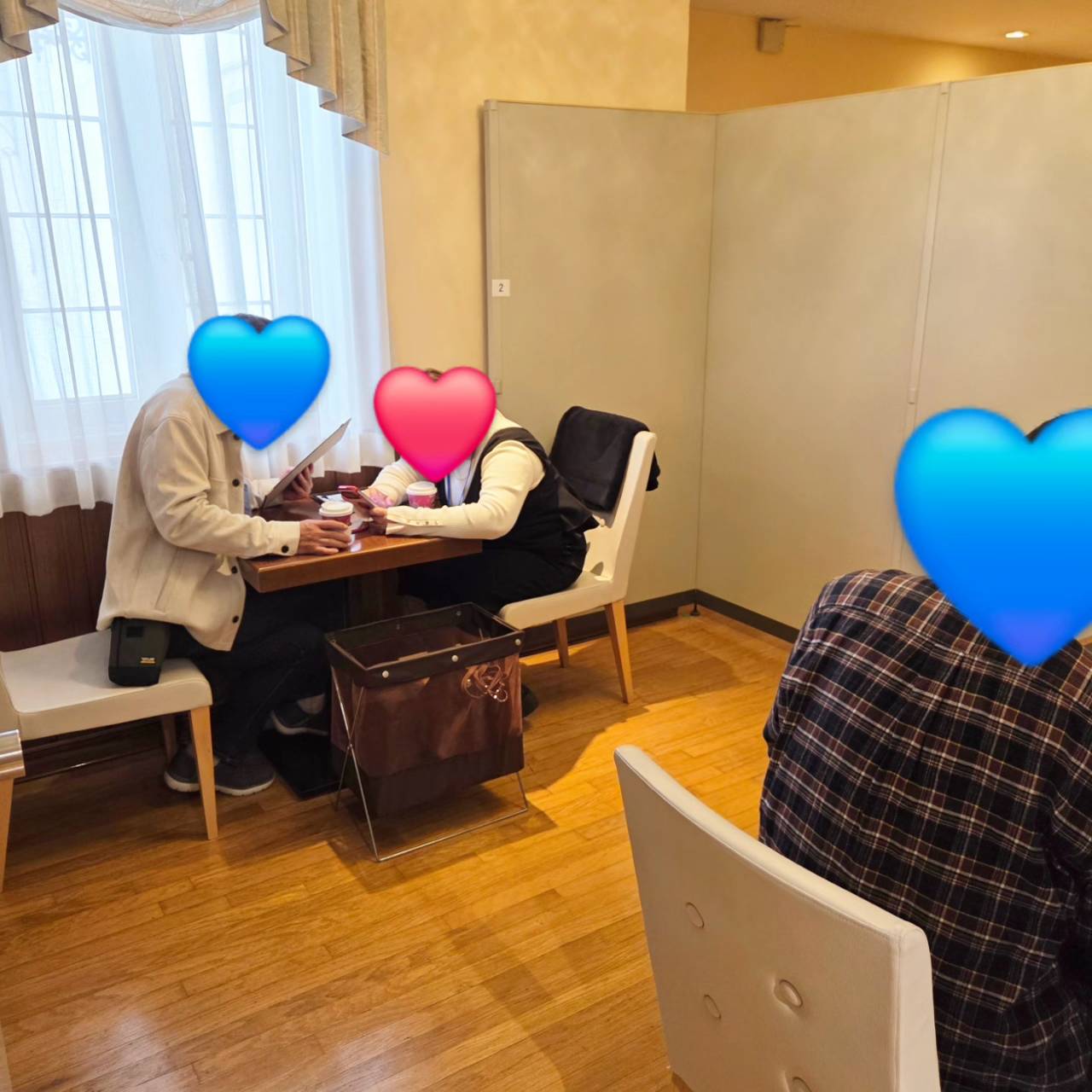 いつも会員様と面談をしているブースを使って「おしゃべり」を楽しんでいただきました。